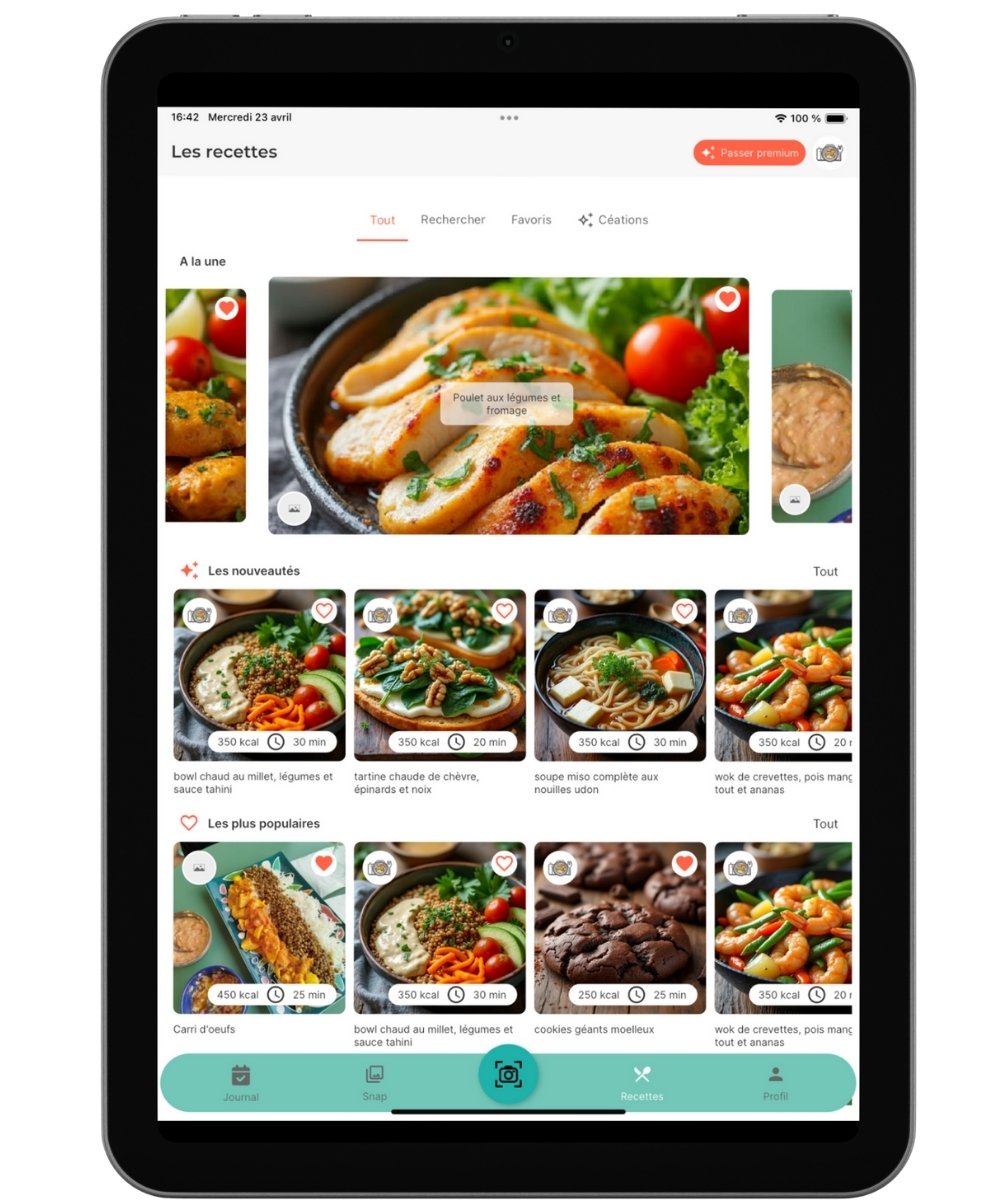 Avec SnapOishi Premium, ouvrez les portes d’une collection unique de recettes saines, créatives et personnalisées, conçues pour vous inspirer au quotidien.