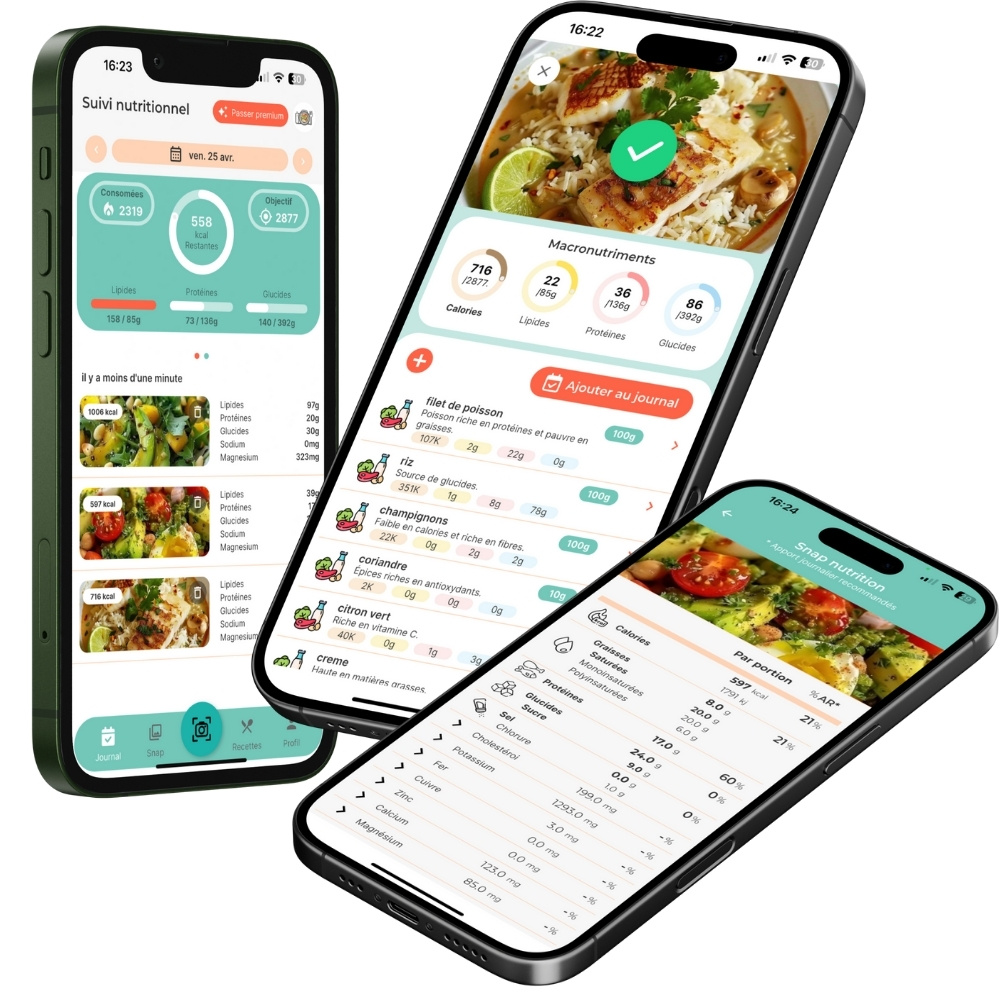 C’est l’alliance unique de l’intelligence artificielle, de la nutrition fiable (données ANSES*), et de la créativité culinaire visuelle.